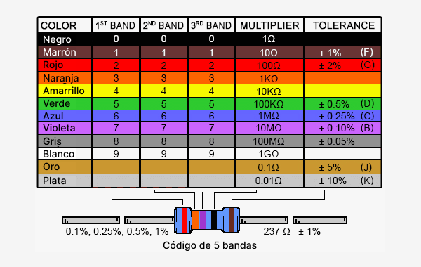 Resistencia de precisión con 5 bandas de colores