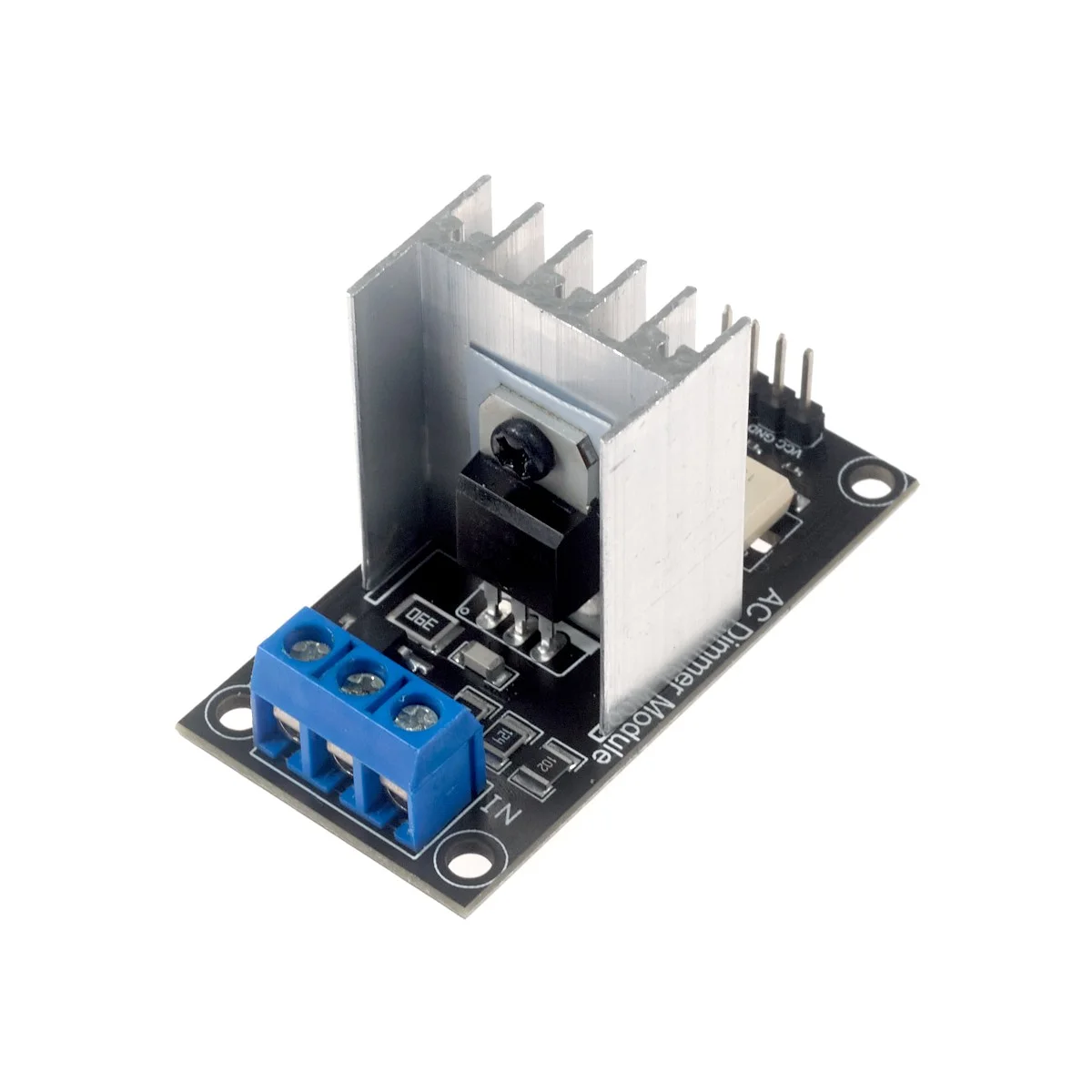 El Módulo Dimmer AC es un dispositivo diseñado para controlar la intensidad de corriente alterna (AC) en aplicaciones de iluminación y otros dispositivos eléctricos. Este módulo permite ajustar la luminosidad de lámparas incandescentes, halógenas y algunas lámparas LED, así como controlar la velocidad de ventiladores y motores AC. Utiliza tecnología de modulación por ancho de pulso (PWM) para proporcionar un control suave y preciso.