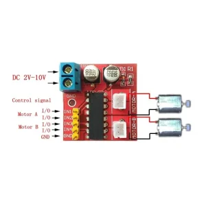 Pines de Conexión: Dispone de pines de conexión para los motores, la alimentación y la interfaz de control, facilitando su integración en proyectos electrónicos.