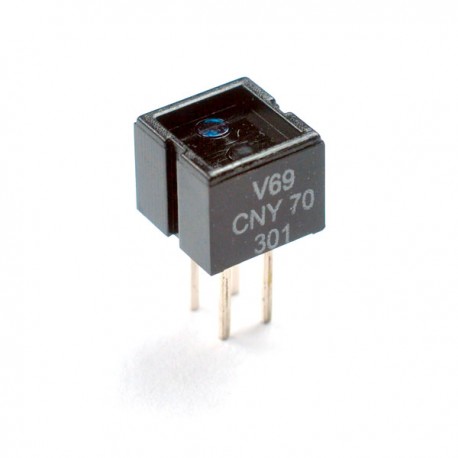 El sensor óptico CNY70 es un sensor de reflexión utilizado para detectar cambios en la luz reflejada por una superficie. Se emplea comúnmente en aplicaciones como seguimiento de líneas en robots, control de posición y detección de objetos. Este sensor combina un LED emisor y un fototransistor receptor, lo que le permite detectar variaciones en la reflectancia de una superficie, siendo ideal para proyectos de automatización y control sin contacto físico.