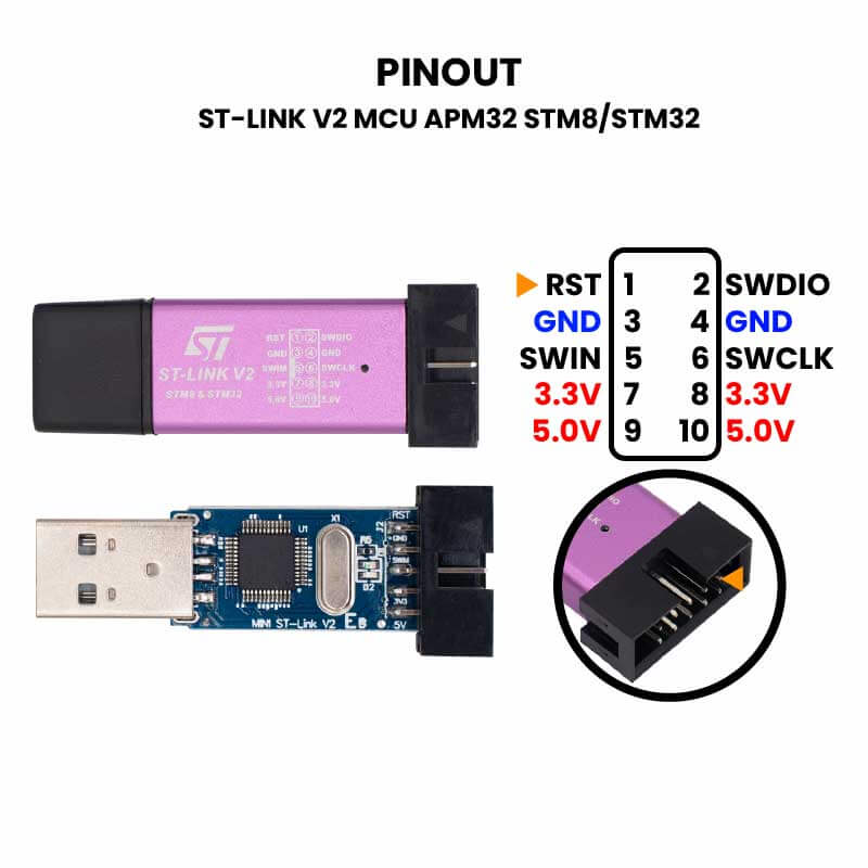 Compatibilidad: Es compatible con una amplia gama de placas de desarrollo y microcontroladores STM8 y STM32 de STMicroelectronics, lo que lo hace versátil y adecuado para una variedad de aplicaciones.